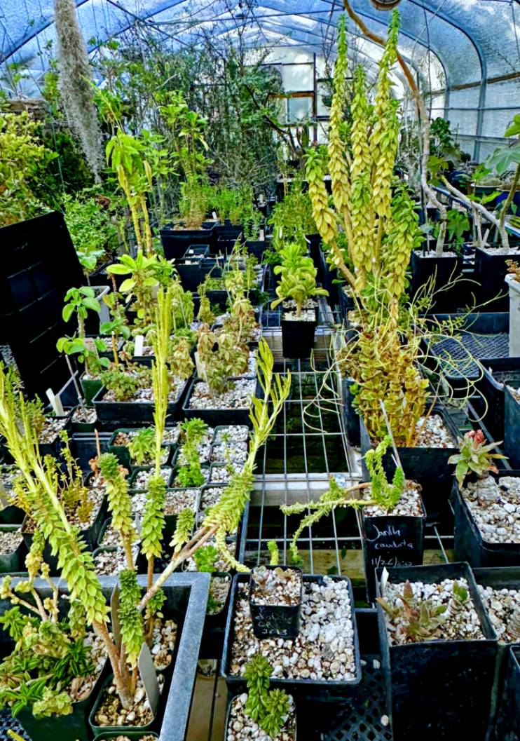 *Note 1 – I’m still coming to terms with the reality that my ability to manage everything has been handicapped by the bizarre cognitive impairment that has persisted since I got COVID two years ago—before this, my expansive memory and robust capacity to visualize allowed me to keep track of the thousands of plants here, perpetually hold in mind their history, care and propagation needs a couple years out, while simultaneously managing orders, correspondence, research, and any number of other projects. These lifelong skills were tattered overnight when I got the virus in August 2023, and we’re still learning to adjust to the fickle limits of my compromised cognition. In addition to the memory maladies, my ability to focus is often disrupted, which, among other things, makes writing frustratingly slow and hinders multi-tasking—key skills that allowed me to successfully grow and manage Sacred Succulents over the years…