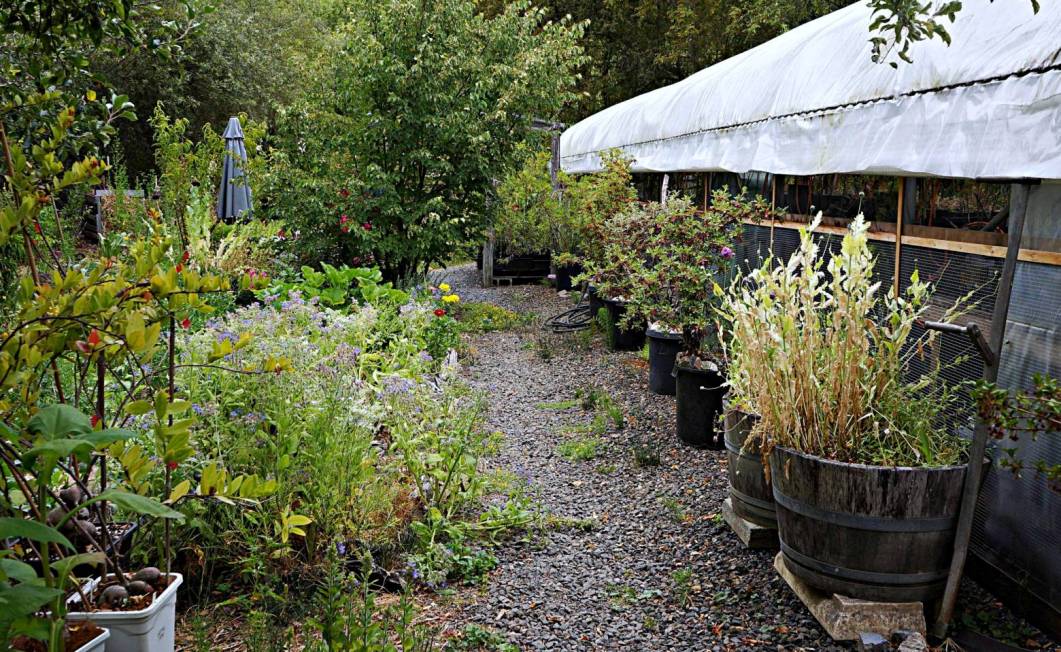 **Note 2 – Since 2017, the diversity of plants here has been in sharp decline due to extreme, manic weather. We’ve experienced devastating losses—around 30% of our entire collection and nearly 50% of our nursery stock, including many endangered and irreplaceable species. The climate in our locale had some notable differences the first 2 decades we grew the nursery and established our conservancy-research garden: typically, winters were drenched and cold, springs wet and cool, summers dry and warm to hot but often tempered by fog, autumns warm to cool and dry to moist. We managed everything by hand watering. Even during hot dry summers there were a large number of species we’d established in our gardens that needed minimal additional water to the annual precipitation. This all changed around 2017—seasonal transitions became more abrupt, winter and spring became drier and interspersed with days to weeks of heat, summer and fall turned hot and desiccated with wildfires a major threat. Sudden extreme temperature swings were the most calamitous, leading to damage (even to cacti) and abrupt death of even well established perennials. With the soil dryer overall, we had mass die off of many rare, irreplaceable species in our gardens, and saw significant losses in the nursery from any missed watering. With erratic weather being the only new consistent, routines and rhythms of care we’d learned over decades no longer applied. Drastic changes to the manifold microclimates we’d created across the nursery & gardens (fine tuned over 20 years for the varied needs of thousands of species), as well as weather damage to our aging infrastructure, demands urgent renovations to nearly our entire scene. Rehabilitating the cumulative accomplishments of decades of work is a massive undertaking, which, until now, has proved untenable under the circumstances.